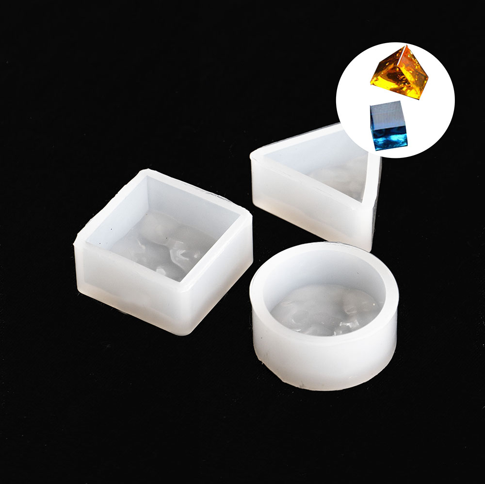 Силиконовая форма (молд) для заливки эпоксидной смолой “Кулоны рельефные”. Габаритные размеры готового изделия: круглый 3.5 см, треугольный 3.3*3.3 см, квадрат 3*3 см. Глубина всех 1.3 см.