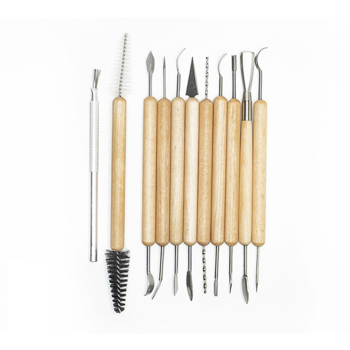 Ассортимент представляет собой 11 предметов, 10 из которых являются двусторонними, что позволяет увеличить содержимое до 21 элемента. Надежная конструкция каждого дает Вам возможность пользоваться набором долгое время. Универсальность подтверждается широким спектром техники лепки: резьба, скалывание, резка.