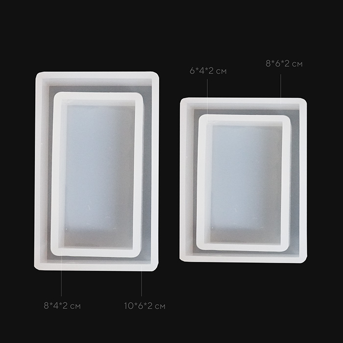 3 набора для изготовления прямоугольных форм из эпоксидной смолы: квадратные (10х10, 8х8 см), прямоугольные (8х6, 6х4, 10х6, 8х4 см) и вытянутые (10х4, 10х2, 8х2, 6х2, 4х2 см). Высота у всех форм – 2 см. Размеры указаны внутренние (готовых изделий). Купить другие молды или необходимый объем смолы для вашей задачи можно на нашем сайте. Выгодная цена приятно удивит каждого мастера.