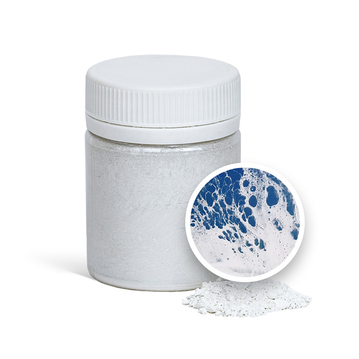 Порошок для создания эффекта морской пены и снега применяется в качестве наполнителя для эпоксидной смолы. Позволяет создавать реалистичные пенные эффекты (волны или снега) на картинах и других изделиях. Окрашивает смолу в белый цвет.